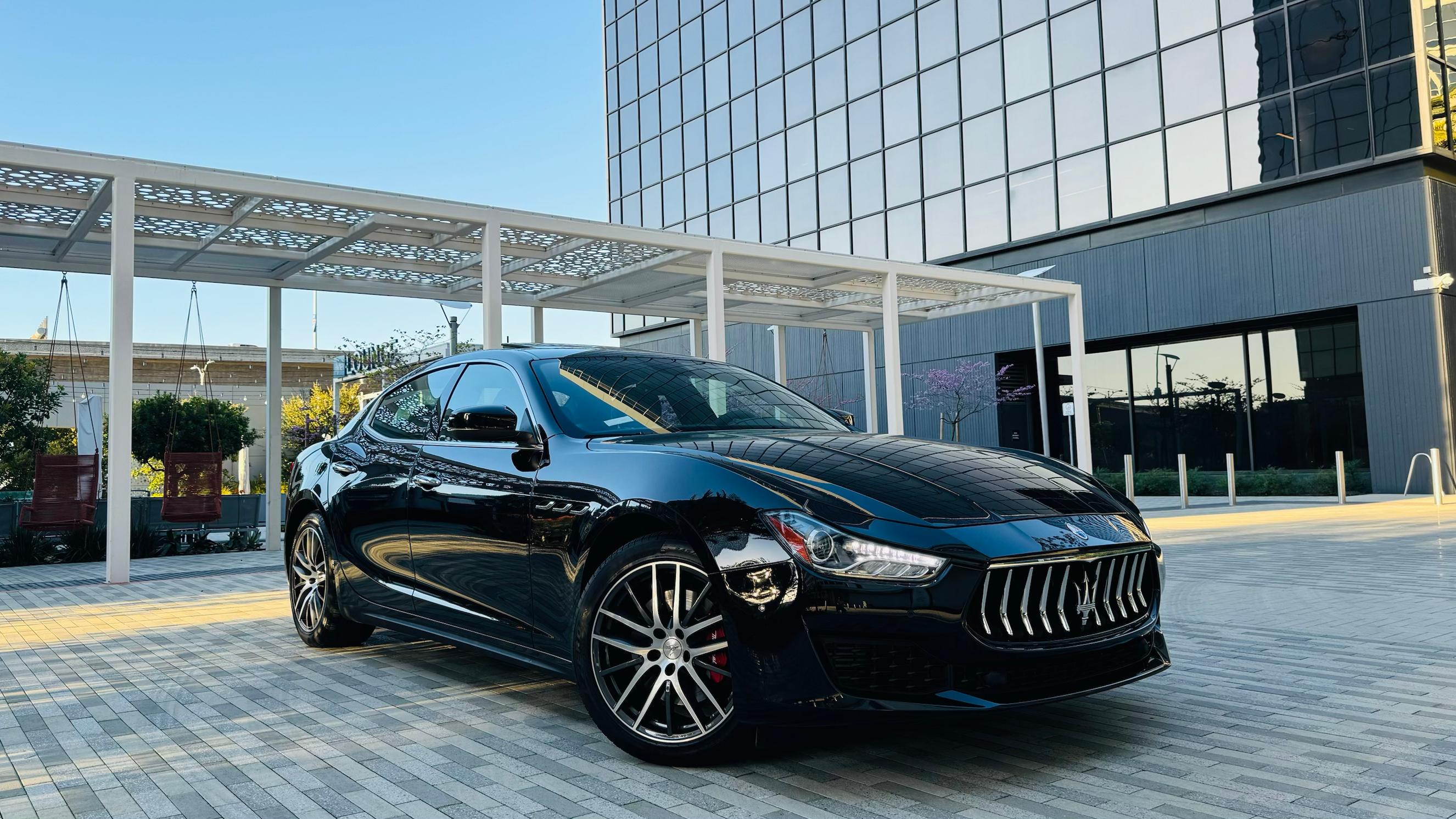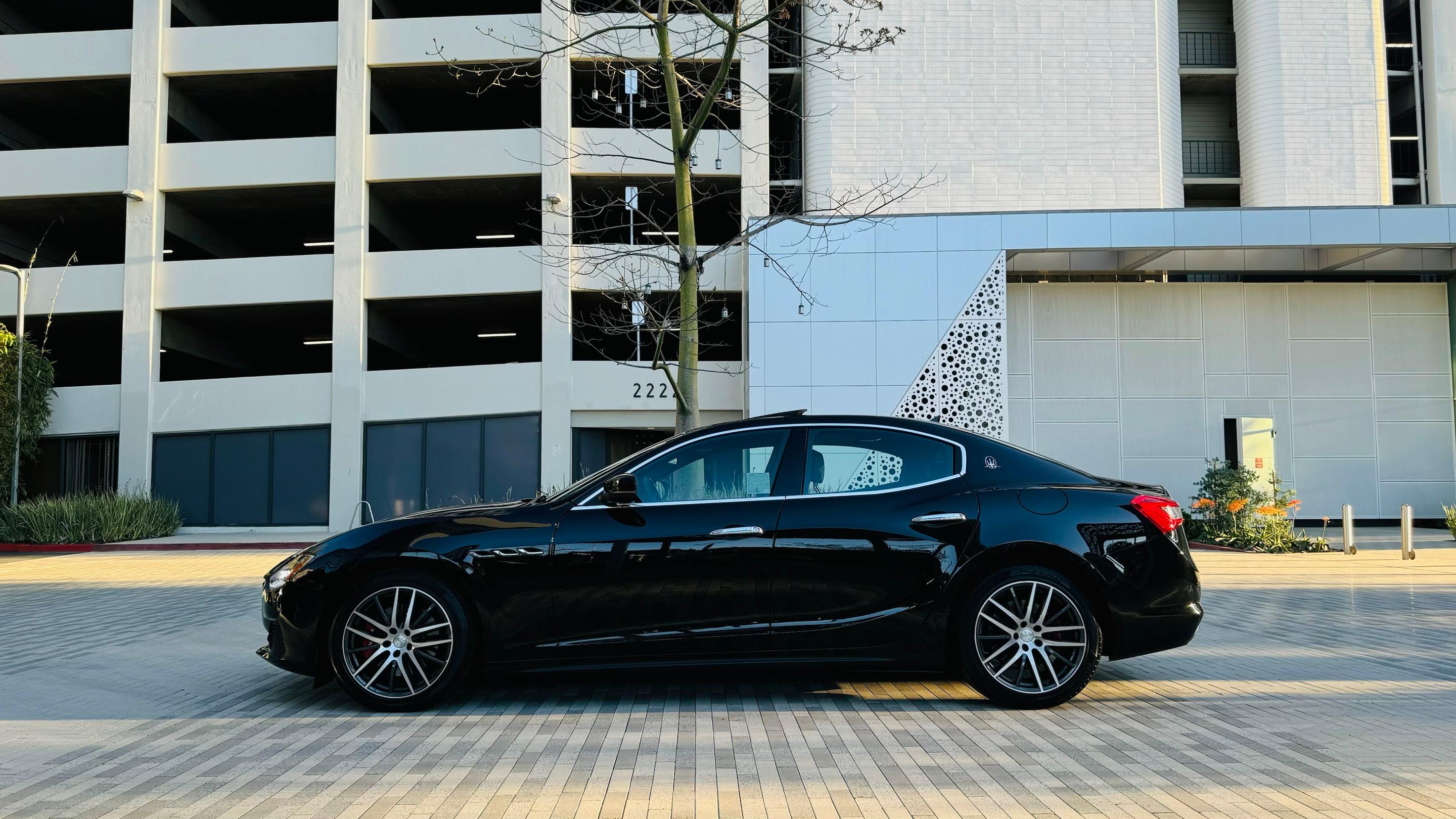 Maserati ghibli black on black for rent in Los Angeles by the LAX international airport. V6 turbo engine is strong. All the power goes to the rear axle, so you have to be careful with gas pedal while turning. Sport exhaust is loud and nasty. Put it on sport mode and you’ll be surprised. It has an Apple CarPlay, android audio, blind sensors and parking assists. Sunroof is on board. Trunk is large and can fit couple suitcases. Not much to say, but definitely You won’t be disappointed with Maserati ghibli for your LA trip.,