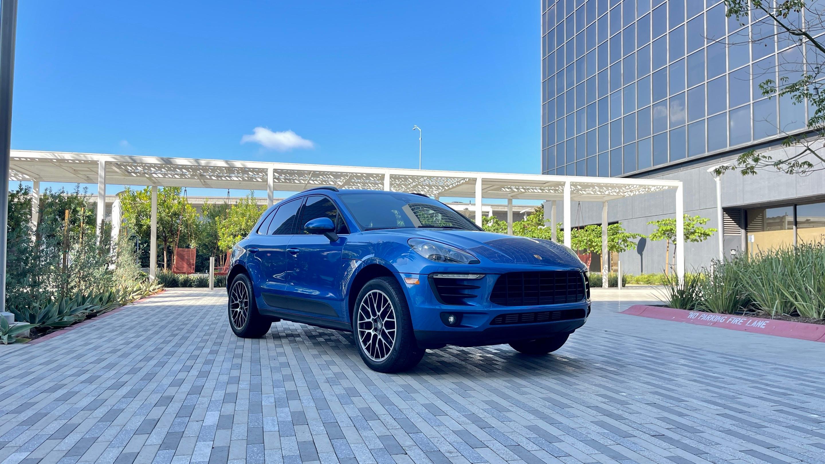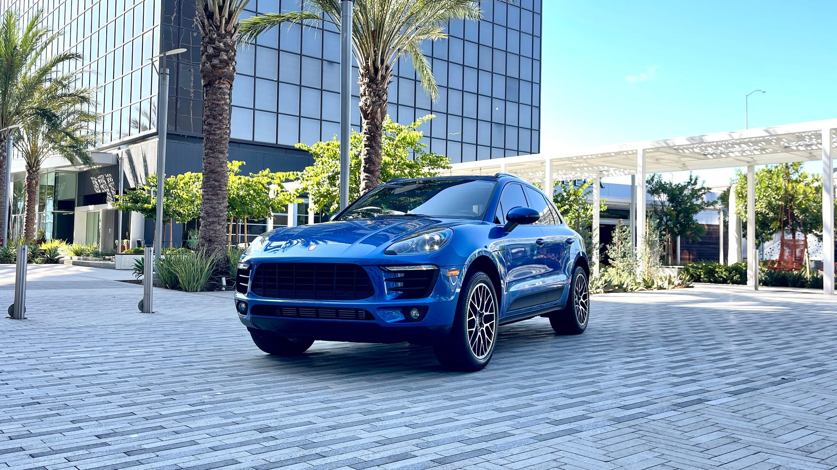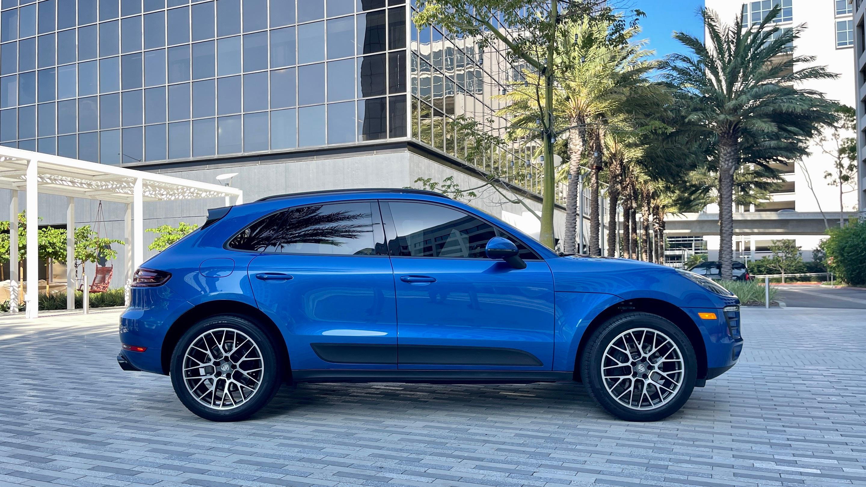 Porsche Macan in Sky Blue color with sport exhaust, leather and alcantara interior, panoramic roof, apple car play and Android auto, parking sensors and blind spot assist, cruise control and lane keep assistant. The car is all wheel drive, have snow tires and forged rims. This Porsche will make your journey in Los Angeles unforgettable. The car is always maintained up to date.,
