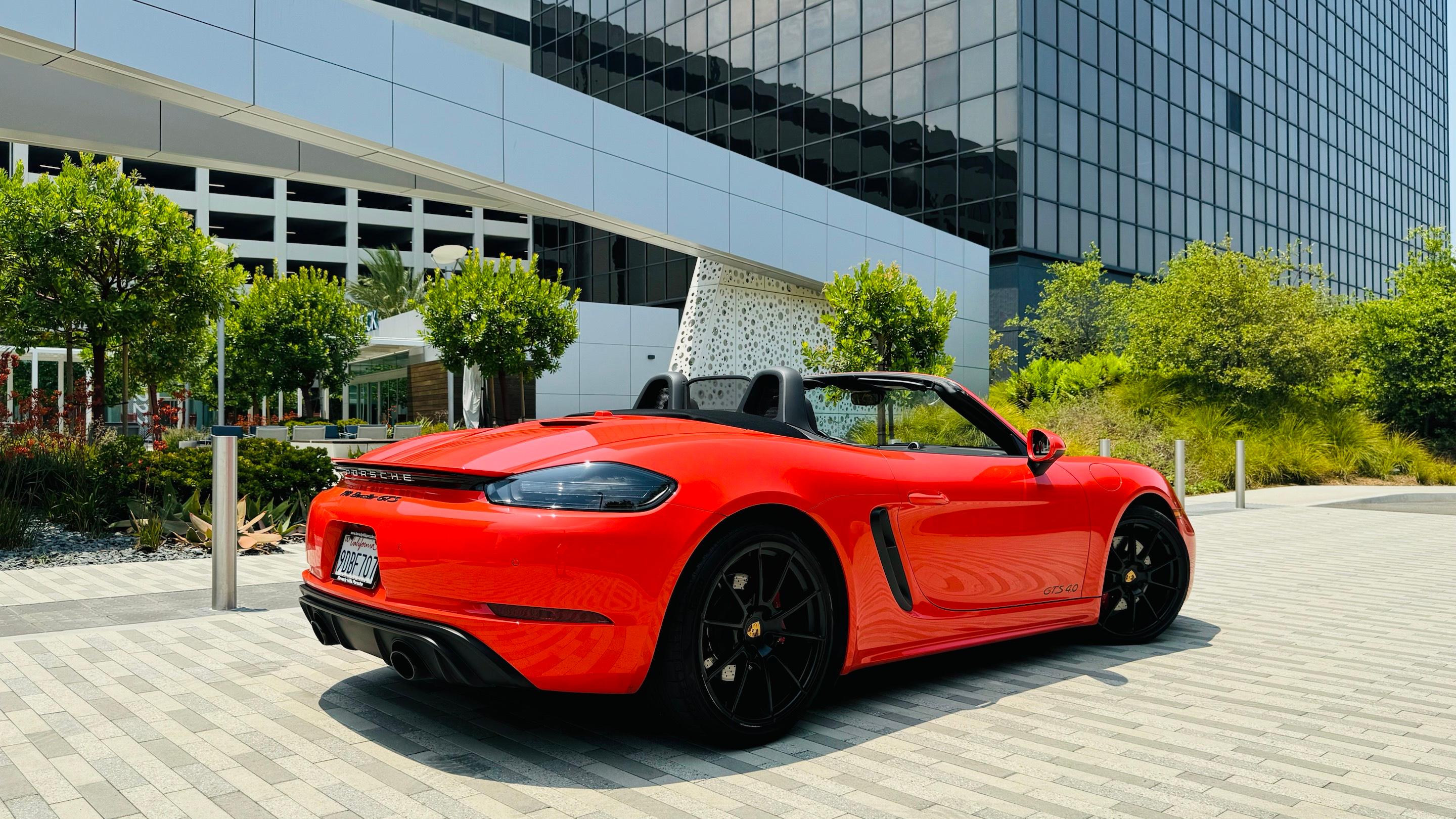 718 Boxster GTS 4.0 in lava orange colour for rental in Los Angeles by the LAX international airport. This model offer an enormous performance spectrum. Guaranteed by the powerful 4.0 liter six cylinder naturally aspirated engine with 394 horspower, Boxster GTS is made for sport. Beautiful combination of lava orange exterior and brown leather interior made this car a head turner. It’s fast, sounds great and has unique handling. The vehicle has wireless Apple CarPlay, Bose sound system, a lot of safety features and user friendly multimedia. Try this roadster with Techiia Motorsports today!,